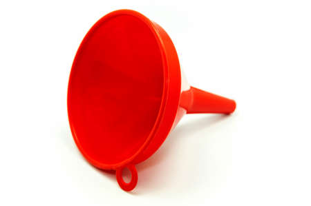 funnel isolated on white. red plastic funnel for liquids.