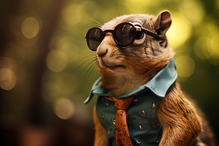 of a well dressed squirrel character wearing a suit tie and sunglasses with a whimsical creative concept for business corporate or fashion related imagery