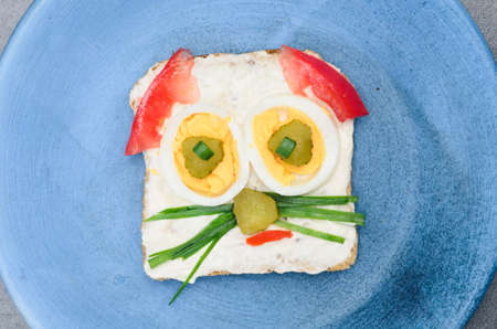 funny sandwich for children on blue plate