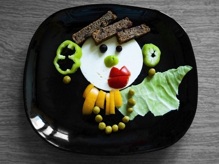 Vegetarian healthy food, fun face, Figure laid out of food on a plate