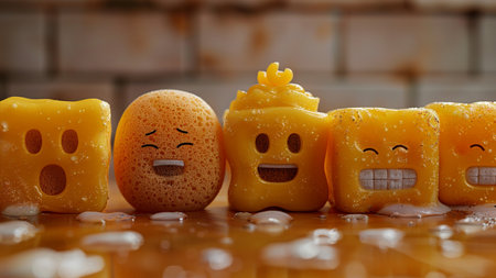 A joyful piece of bread exudes warmth and happiness in a vibrant kitchen atmosphere.
