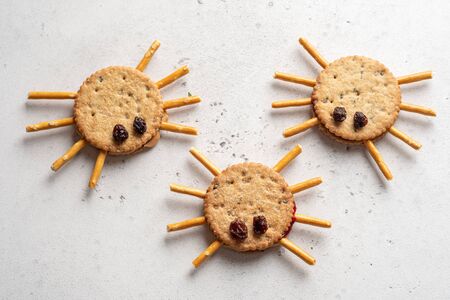 Halloween cookie spiders with peanut butter and jam