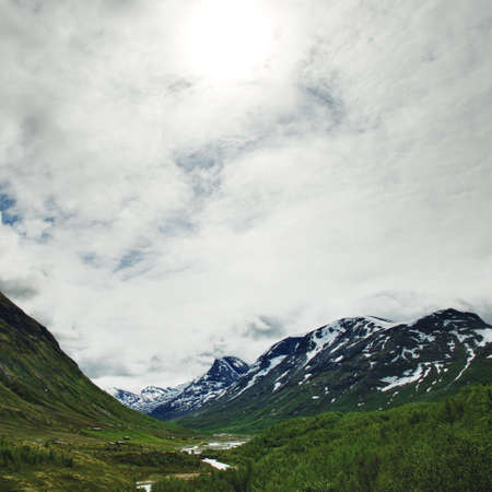 Summer mountains landscape in Norway. National tourist scenic route 55 Sognefjellet from Lom to Gaupne.