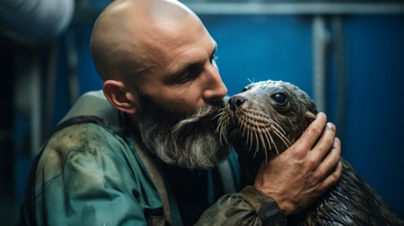 Vet cares for injured seal pup at rescue center natural sanctuary ambiance