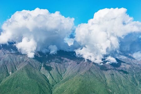 Caucasus mountains and clouds above at day time. Sochi. Russia.
