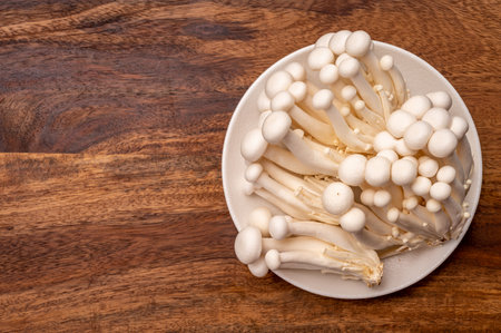Shimeji mushroom on wooden table