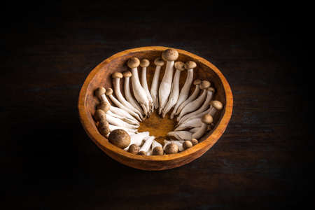 brown beech mushroom on wooden table-Still Life