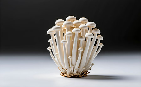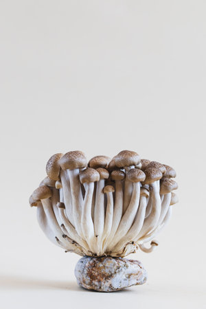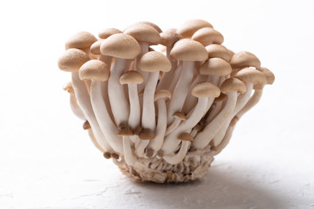 White and brown shimeji edible mushrooms native to East Asia, buna-shimeji is widely cultivated and rich in umami tasting compounds