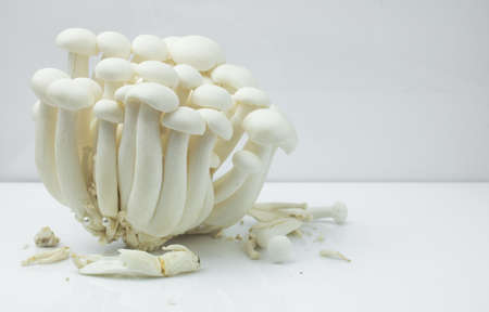 Shimeji mushroom or White beech mushroom isolated on white background. Shimeji is highly nutritious, rich in calcium, potassium, and help in managing diabetes, weight & cholesterol.