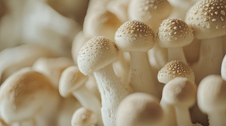 Close-up of organic button mushrooms, earthy and fresh, ideal for soups, salads,