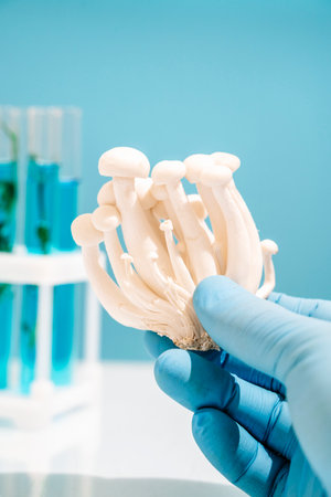 Mushroom in science lab. Biotechnology and medicine concept