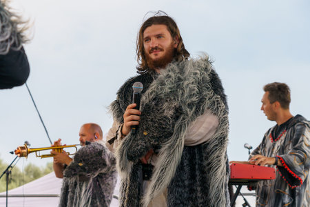 June 12, 2022 Duruitoara Moldova. For illustrative editorial use. Musicians at a public open event of folk music