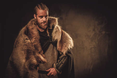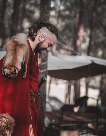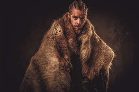 Viking konung in a traditional warrior clothes