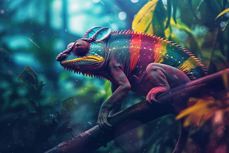 Computer Technology and Wildlife: A Mysterious Picture of a Colorful Chameleon Created by AI