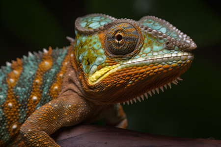 Close-up view of chameleon's rainbow-colored scales Creating using generative AI tools