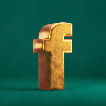 Fortuna Gold Letter F lowercase on Tidewater Green background. Trend color font type symbol. 3d render.
