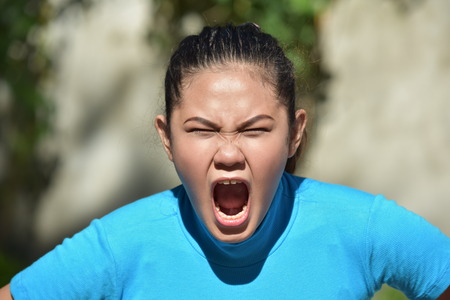 Conflict, bad relationships, difficulties. Young angry woman fury girl