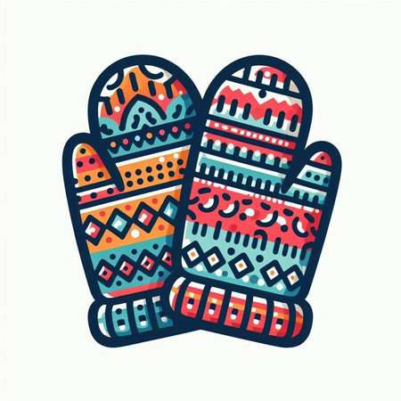 Mittens with ethnic ornaments. Vector illustration in doodle style.