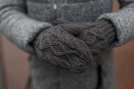 Vintage knitted gray mittens.