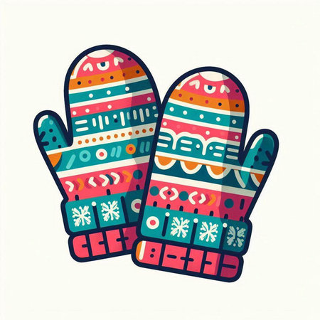 Vector illustration of knitted mittens. Hand-drawn illustration.