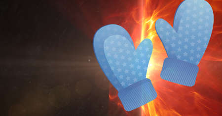 Digitally generated image of baking gloves icon against red fire effect on black background. baking concept
