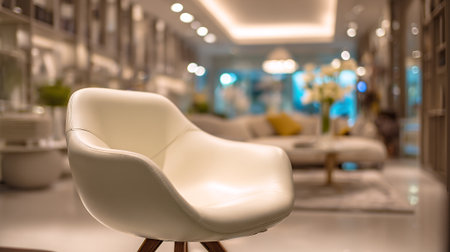 Stylish White Leather Chair in Modern Living Room, Soft Lighting