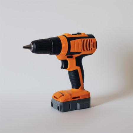 cordless power drill with orange and black design for repair projects isolated on white background