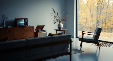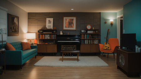 Inspiring office interior design Retro style Lounge featuring Vintage accents architecture. Generative AI AIG 31.