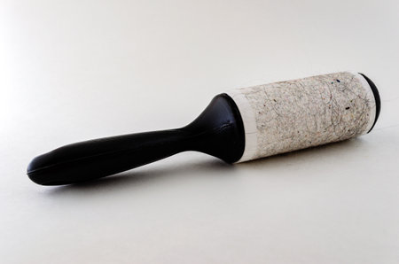 Single sticky roller with pet hair isolated on a white background