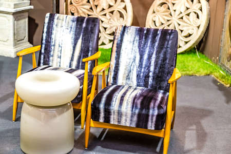 MODENA, ITALY – FEBRUARY 15, 2019: Unusual vintage artworks offered for sale by antique dealers in Petra Fair, antique furniture, decoration and design for parks and gardens