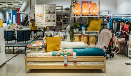 SINGAPORE - MAR 4, 2020: Interior of IKEA store, a brand of multinational group that designs and sells ready-to-assemble furniture and homeware products