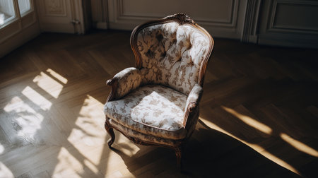 A beautifully crafted vintage chair bathed in soft natural light, showcasing intricate upholstery and elegant design, perfect for interior decor inspiration.