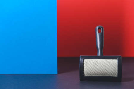 Sticky cleaner from wool and dust for clothes on black dusty velvet. High quality photo
