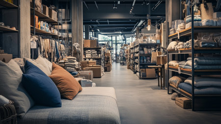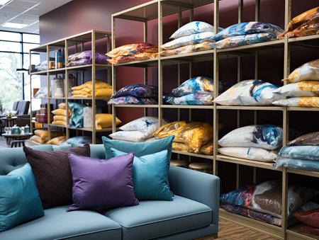 Interior of a modern furniture store with pillows and cushions