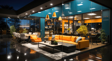 Warm and inviting modern showroom interior with product display