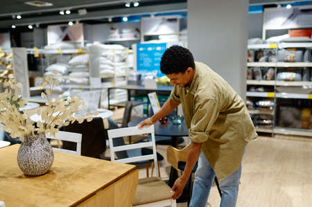 Man is buying folding chair for garden