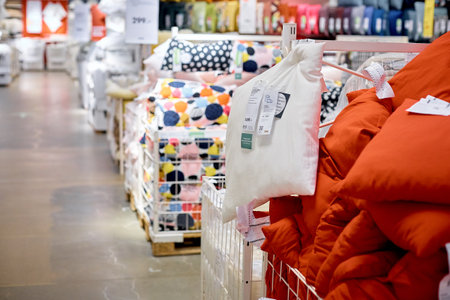 Kazan, Russia - Oktober 17, 2018: Interior of large IKEA store with a wide range of products in Russia. Things for bedroom