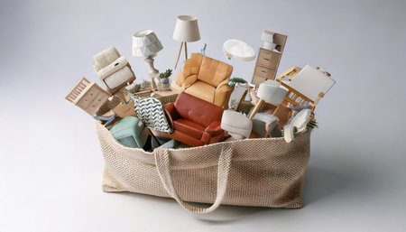 A beautifully arranged living room showcases stylish furniture and decor, all featuring sale tags for an exciting seasonal promotion.