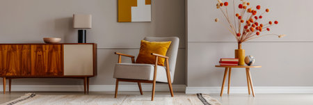 Inspiring office interior design Mid-century style Lounge featuring Retro furniture architecture. Generative AI AIG 31.