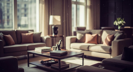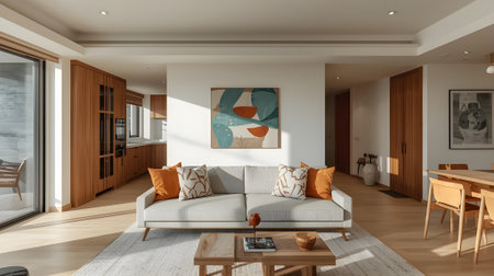 A stylish modern living room interior design with vivid and warm tone colors in the apartment. Generative AI AIG27.