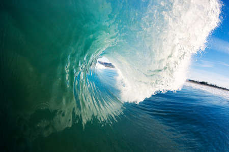 Perfect barrel wave in ocean. Breaking wave with sun light