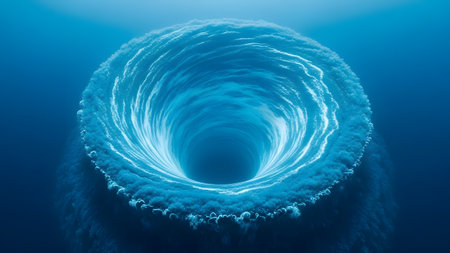 This captivating image showcases a powerful ocean swirl, creating a mesmerizing vortex with dynamic waves and turbulence in a vibrant aquatic environment.