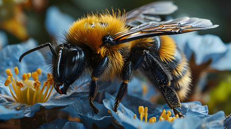 Close-up of a bumblebee on a vibrant flower, showcasing detailed fuzzy texture and natural beauty.