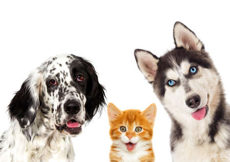 portrait set of pets on white background