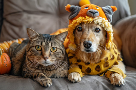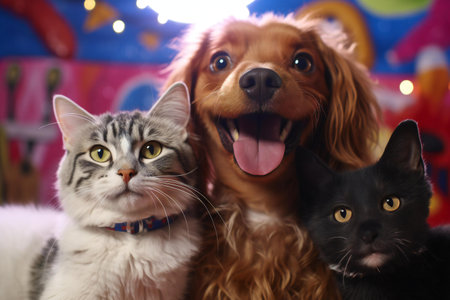 photoshoot, with cat and dog models wearing outfits of their own designs, created with generative ai
