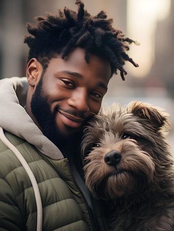 Man Hugging His Dog Outdoors, Celebrating the Bond Between Humans and Their Pets.
