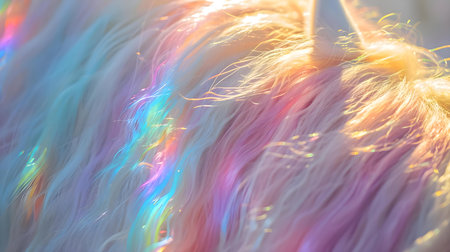A macro view captures the delicate strands of soft fur, illuminated by a warm, golden sunbeam. The light creates a glowing, ethereal effect, highlighting the rich texture and gentle flow of the animals coat, evoking a sense of comfort, nature, and warmth.