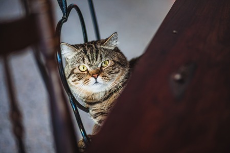 A selective focus shot of a cute striped cat staring at the camera