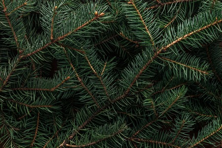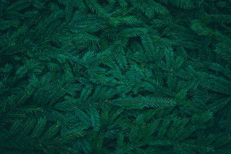 Fir branches green needle abstract background Christmas texture. Horizontal composition.