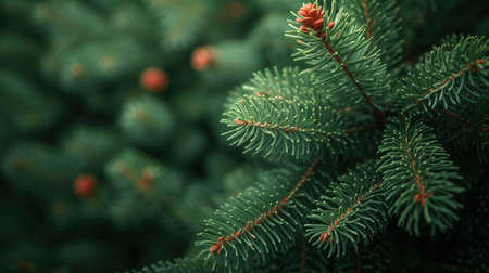 New Year background. Christmas tree branches. AI generative. Illustration in photorealistic style.